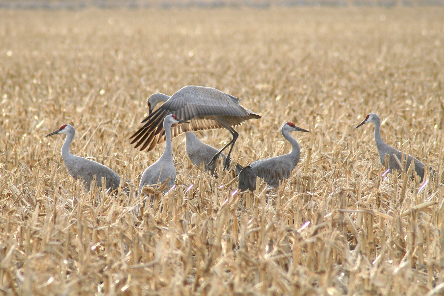 Mit mehr als 2,2 m Flügelspannweite sind die Kraniche oft noch etwas größer, als unsere Störche.