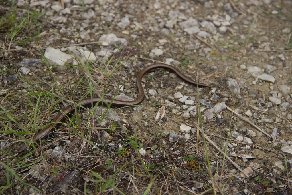 Man trifft relativ häufig auf die bis zu 50 cm langen Blindschleichen, die allerdings keine Schlangen sind, sondern Echsen.